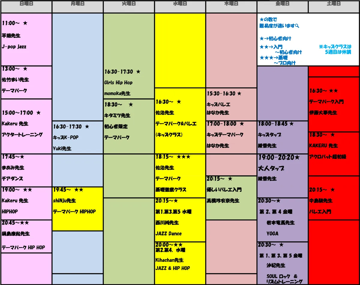レッスンスケジュール